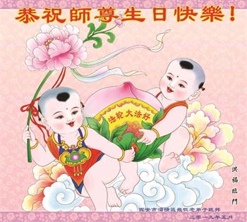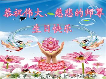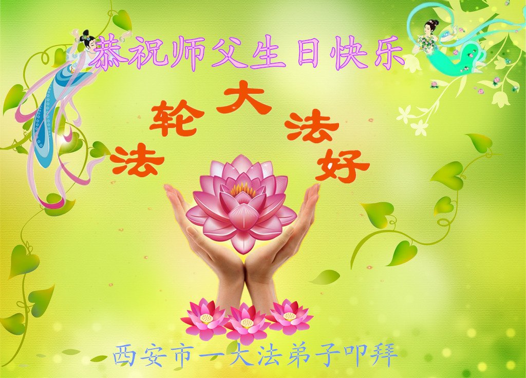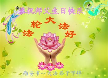 陕西省西安一大法弟子恭祝师父生日快乐!法轮大法好!