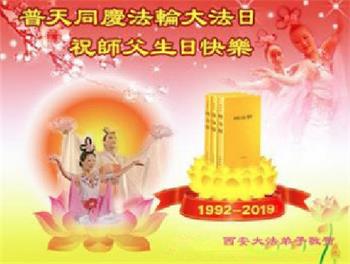 陕西省西安大法弟子恭贺法轮大法日及师尊华诞!