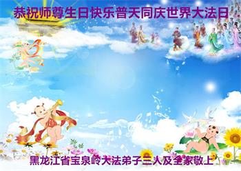 黑龙江省七台河市一家三口大法弟子恭贺师尊华诞!普天同庆同颂世界法轮大法日!