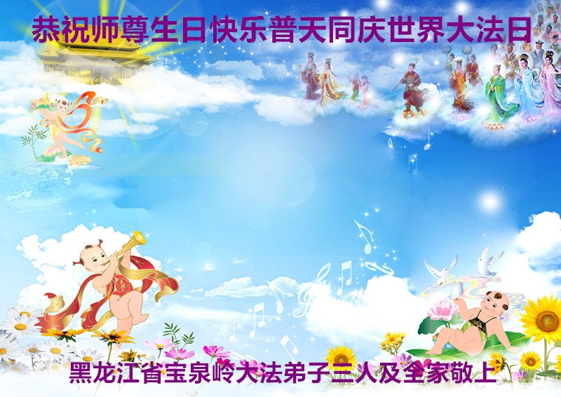 恭祝师尊生日快乐!恭贺世界法轮大法日! 黑龙江省双鸭山市新安矿友谊县风岗镇大法弟子恭祝师尊生日快乐!恭贺世界法轮大法日!