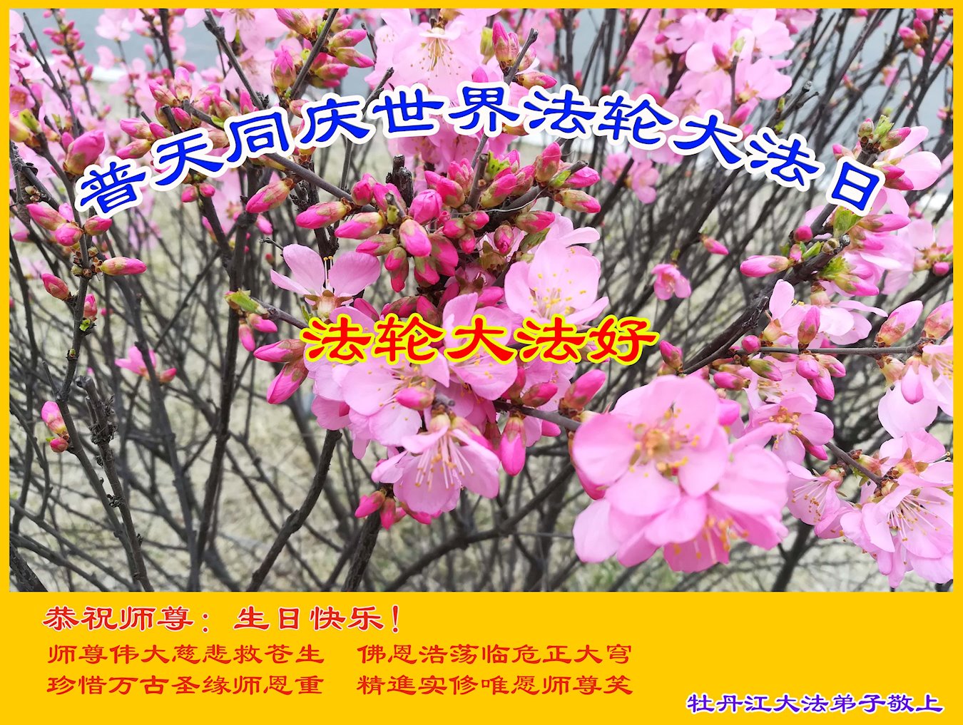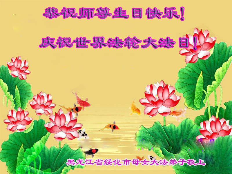 恭祝师尊生日快乐!恭贺世界法轮大法日! 黑龙江省牡丹江大法弟子恭祝师父生日快乐!