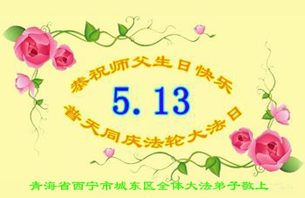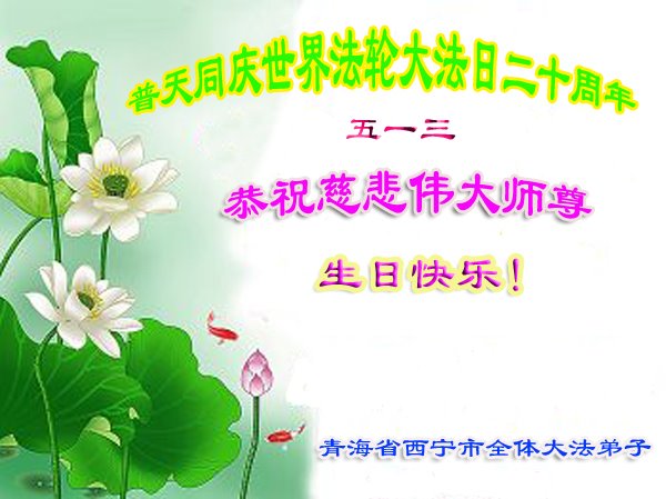 青海省西宁市城东区大法弟子恭祝慈悲伟大的师尊传法27周年!普天同庆513世界法轮大法日! 恭祝师尊生日快乐!叩谢师父! 青海省西宁市一大法弟子及家人恭祝慈悲伟大的师尊生日快乐!普天同庆法轮大法日!向师尊叩拜!合十