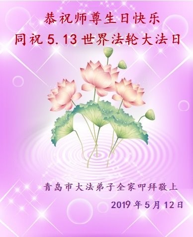 在这喜庆的日子来临的时候,我们更加想念师尊,盼望能早日和师尊团聚。我们一家大法弟子恭祝慈悲伟大的师父生日快乐!恭贺世界法轮大法日快乐!谢谢师父的看护!弟子一家叩拜慈悲伟大的师尊! 山东省青岛大法弟子恭祝师父生日及法轮大法日!