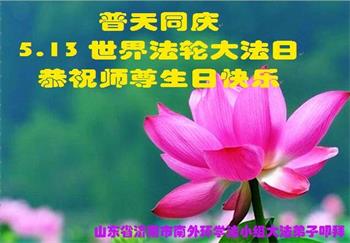 山东济南市历城区一个名大法弟子恭祝慈悲伟大的师父生日快乐!恭贺世界法轮大法日!