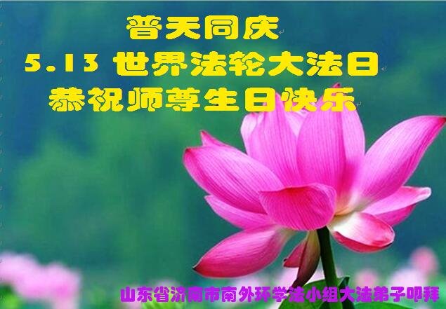 山东省济南市南外环学法小组大法弟子恭祝5.13世界法轮大法日!恭祝师尊生日快乐! 山东省济南市南外环学法小组大法弟子叩拜 山东省济南大法弟子一家恭祝师尊生日快乐!