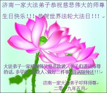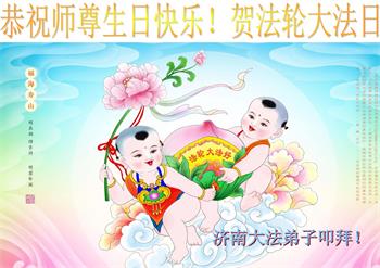山东济南一家大法弟子恭祝师父生日快乐!普天同庆世界法轮大法日!