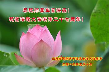山东省德州市宁津县大法弟子恭祝师尊生日快乐!祝法轮大法洪传27周年!