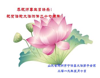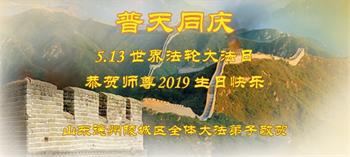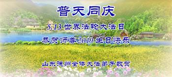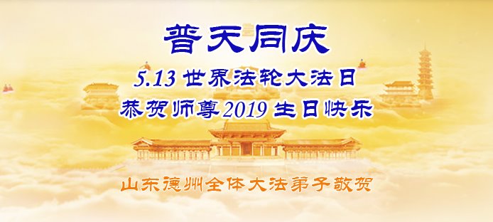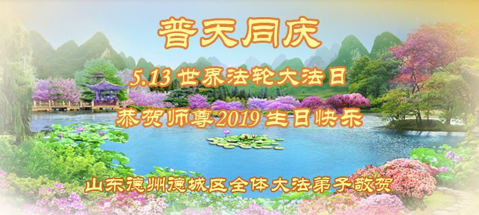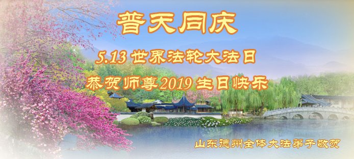 山东省德州大法弟子恭贺5.13世界法轮大法日!恭祝师尊2019生日快乐!