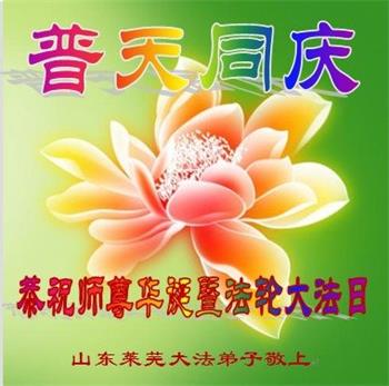 山东日照大法弟子恭祝慈悲伟大的师尊生日快乐!恭贺世界法轮大法日! 山东省烟台开发区大法弟子恭贺世界法轮大法日!暨师尊华诞!