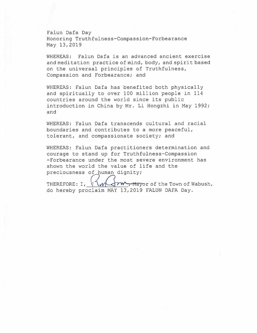 安省昆特威斯特(Quinte West)市宣布2019年5月13日为昆特威斯特“法轮大法日”,并褒奖法轮大法。  图11:纽芬兰省沃布什(Wabush)市宣布2019年5月13日为沃布什“法轮大法日”。 |