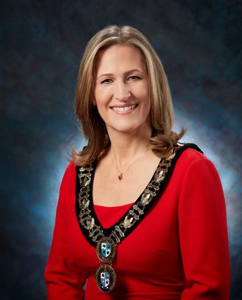 安省伯灵顿市(Burlington)市长玛丽安娜‧米德‧沃德(Marianne Meed Ward)发出贺信表示:“我要祝贺法轮大法在2019年5月13日庆祝传世27周年,以示我们的城市的支持。” “法轮大法修炼通过炼功动作和‘真、善、忍’指导准则帮助着民众。” “我们非常高兴能给予(法轮大法传世周年庆典)活动支持,在全世界一百多个国家,包括加拿大和众多(法轮大法)追随者都在参与这个庆祝活动。” 萨省沃曼市市长赞“真、善、忍”有益社会,沃曼市欢迎法轮大法  图28:萨斯喀彻温省沃曼市(Warman)市长雪莉‧思朋斯(Sheryl Spence) |