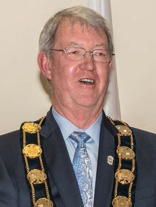 安省萨尼亚市(Sarnia)市长麦可‧布莱德利(Mike Bradley)发来贺信:“我非常高兴能有机会在法轮大法传世27周年之际,向加拿大法轮大法学会转达我的祝贺。” “你们对信仰的坚守值得赞扬,祝愿你们2019年事事顺心。” 安省埃兰市市长:感谢法轮大法!  图34:安省埃兰(Erin)市长阿伦‧阿尔斯(Allan Alls)。 |