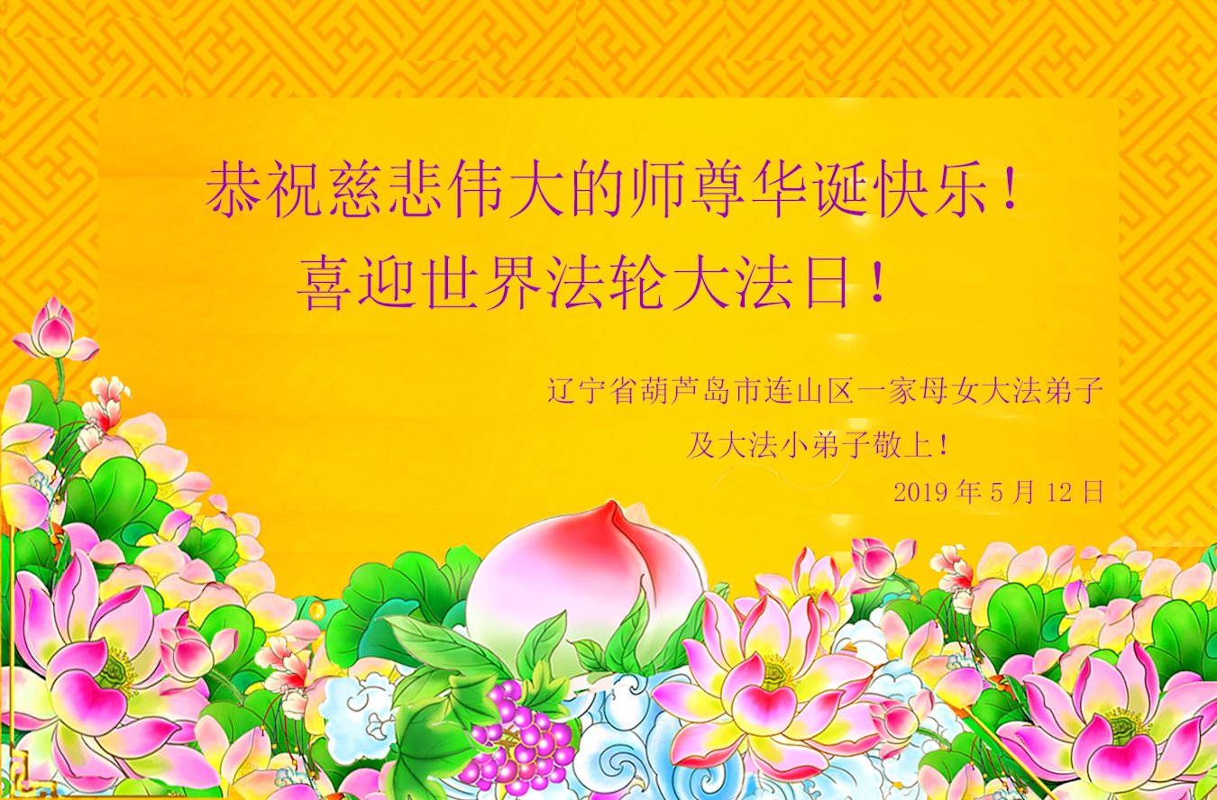 辽宁省葫芦岛市连山区一家母女大法弟子及大法小弟子恭祝慈悲伟大的师尊华诞快乐!