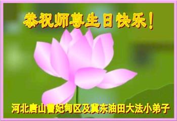 河北唐山曹妃甸区及冀东油田大法小弟子 黑龙江佳木斯市桦川县大法小弟子及奶奶恭祝慈悲伟大的师尊生日快乐!
