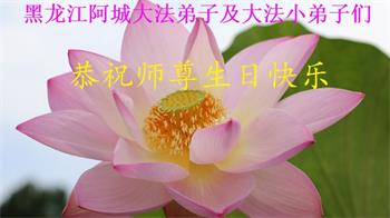 黑龙江省哈尔滨市阿城市大法弟子及小弟子们恭祝师尊生日快乐!