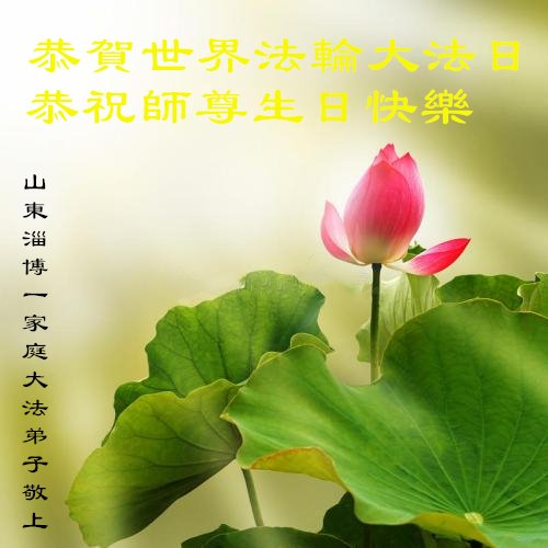 山东淄博一家庭大法弟子恭贺世界法轮大法日!恭祝师尊生日快乐!