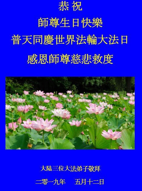大陆三位大法弟子恭祝师尊生日快乐!普天同庆世界法轮大法日!