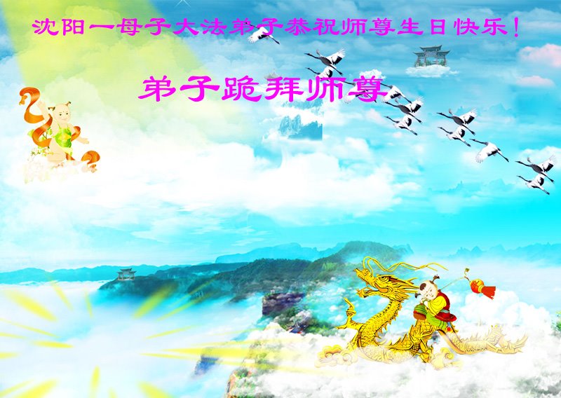 沈阳市沈河区一大法弟子恭祝慈悲伟大的师尊生日快乐!恭祝世界法轮大法日!师尊辛苦了! 辽宁朝阳大法弟子恭祝师尊华诞暨世界法轮大法日!