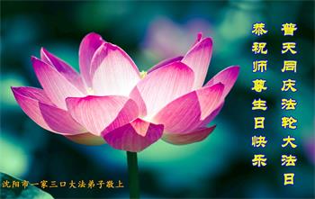 辽宁省沈阳一家三位大法弟子恭祝师尊华诞!庆祝5·13世界法轮大法日!