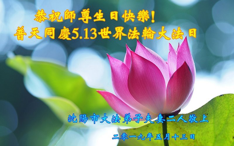 辽宁省沈阳市大法弟子夫妻二人恭祝师尊生日快乐!普天同庆世界法轮大法日!