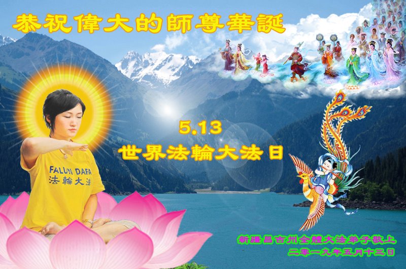 恭贺法轮大法日! 寰宇清平,众生同贺! 新疆全体大法弟子恭祝慈悲伟大的师尊华诞!