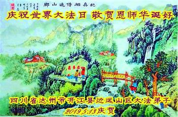 四川省达州市开江县边远山区大法弟子庆祝世界大法日!敬贺恩师华诞!