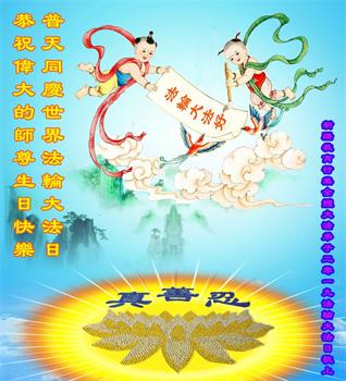 感谢师父一年来的慈悲保护,唯有精進以 报师恩。师父您辛苦了! 广东高校大法弟子敬祝师父生日快乐!恭贺世界法轮大法日!