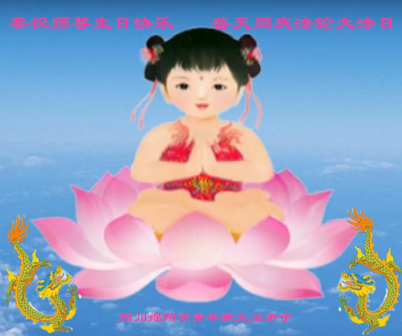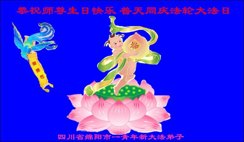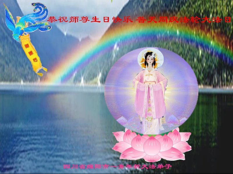 感恩师父。师父辛苦了!师父给弟子安排的一切都是最好的。弟子一定抓紧时间,奋起直追,修去人心,跟师父回家!弟子想念您! 四川省绵阳市一青年新大法弟子恭祝师尊生日快乐!普天同庆法轮大法日!