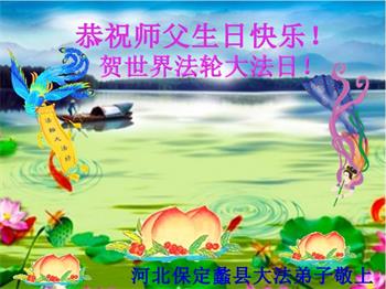 河北唐山大法弟子恭祝师尊华诞恭贺世界法轮大法日! 合十 河北省保定市大法弟子恭祝师父生日快乐!