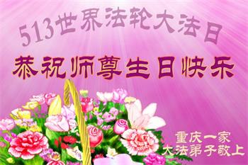 重庆沙坪坝土湾大法弟子全家恭祝世界法轮大法日!恭祝师父生日快乐!