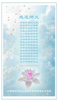 山西太原大法弟子恭祝师尊生日快乐!普天同庆世界法轮大法日!