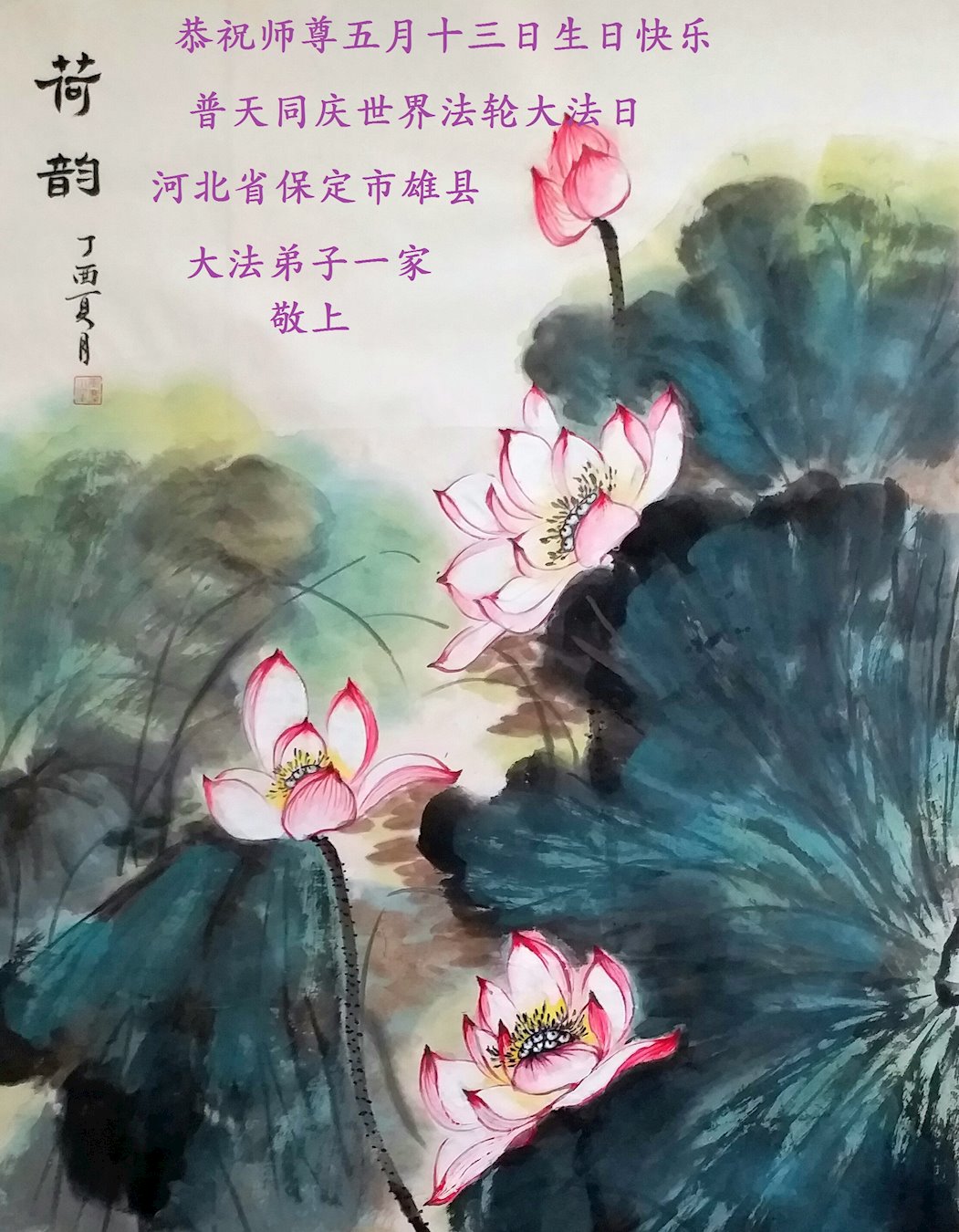 河北保定市雄县大法弟子一家恭祝师尊生日快乐!恭贺世界法轮大法日!