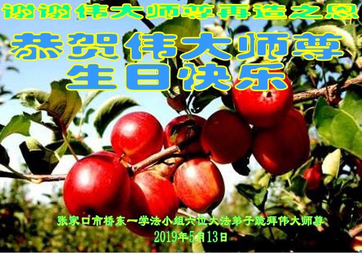河北省张家口市一学法小组全体大法弟子恭祝师尊生日快乐!恭贺五·一三世界法轮大法日!