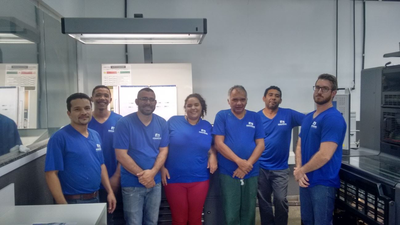 厂里职工都象一家人一样相互帮助,厂方为他们提供早餐和下午的点心,中饭大多自带。有专门的餐室,大家坐在桌边,边吃边聊。每次我去印真相资料都同他们一起吃饭和聊天,他们对中共强行限制中国人的信仰自由、言论自由和在中国频频出现的毒疫苗、毒奶粉、毒食品等现象表示极大震惊,都不敢相信这些真会发生在地球上,一再说巴西坚决拒绝共产主义指导下的社会主义。  图2:印刷厂的职工和睦相处如一家人 |