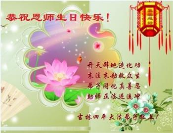 师父谢谢您,您辛苦了!弟子一定要完成好自己应该完成好的救人项目,圆满随师还。 吉林四平一大法弟子恭祝师父生日快乐!