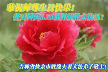 【明慧网二零一九年五月八日】 吉林省扶余市胜缘夫妻大法弟子恭祝师尊生日快乐!