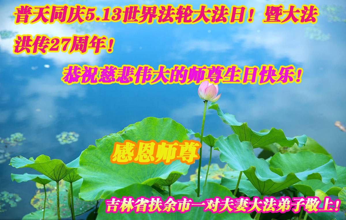 大法洪传二十七周年,普天同庆世界法轮大法日!全体农安大法弟子感恩师尊慈悲救度,恭祝师尊生日快乐! 吉林省松原市一大法弟子恭贺法轮大法日!敬祝师父生日快乐!