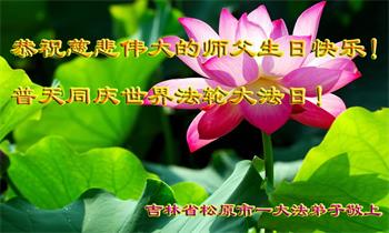 吉林省松原市一大法弟子恭祝师尊生日快乐!庆祝世界法轮大法日!