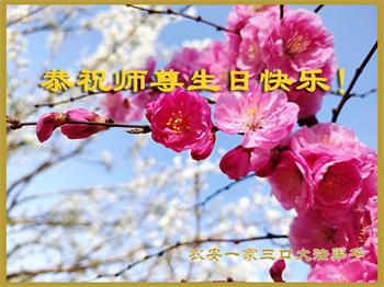 在这普天同庆的美好时刻,弟子以无限感恩的心情恭祝师尊生日快乐!师尊您辛苦了! 师尊用巨大的承受与付出,换来了又一个世界法轮大法日,为我们创造更多的修炼提高和救度众生的机缘,唯有精進实修,严格要求一思一念,全力救度众生! 农安一家三口大法弟子叩拜师尊! 2019年5月2日 吉林省松原市大法弟子祝师父生日快乐!恭贺法轮大法日!