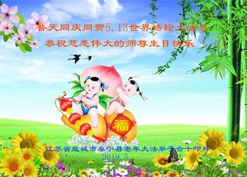 江苏淮安大法弟子恭祝师父生日快乐!恭祝世界法轮大法日!
