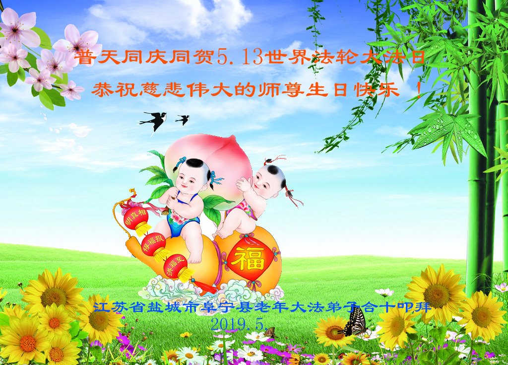 普天同庆同贺5.13世界法轮大法日 恭祝慈悲伟大的师尊生日快乐! 江苏省盐城市阜宁县老年大法弟子合十叩拜 江苏省连云港市赣榆区老年学法小组大法弟子恭贺法轮大法日