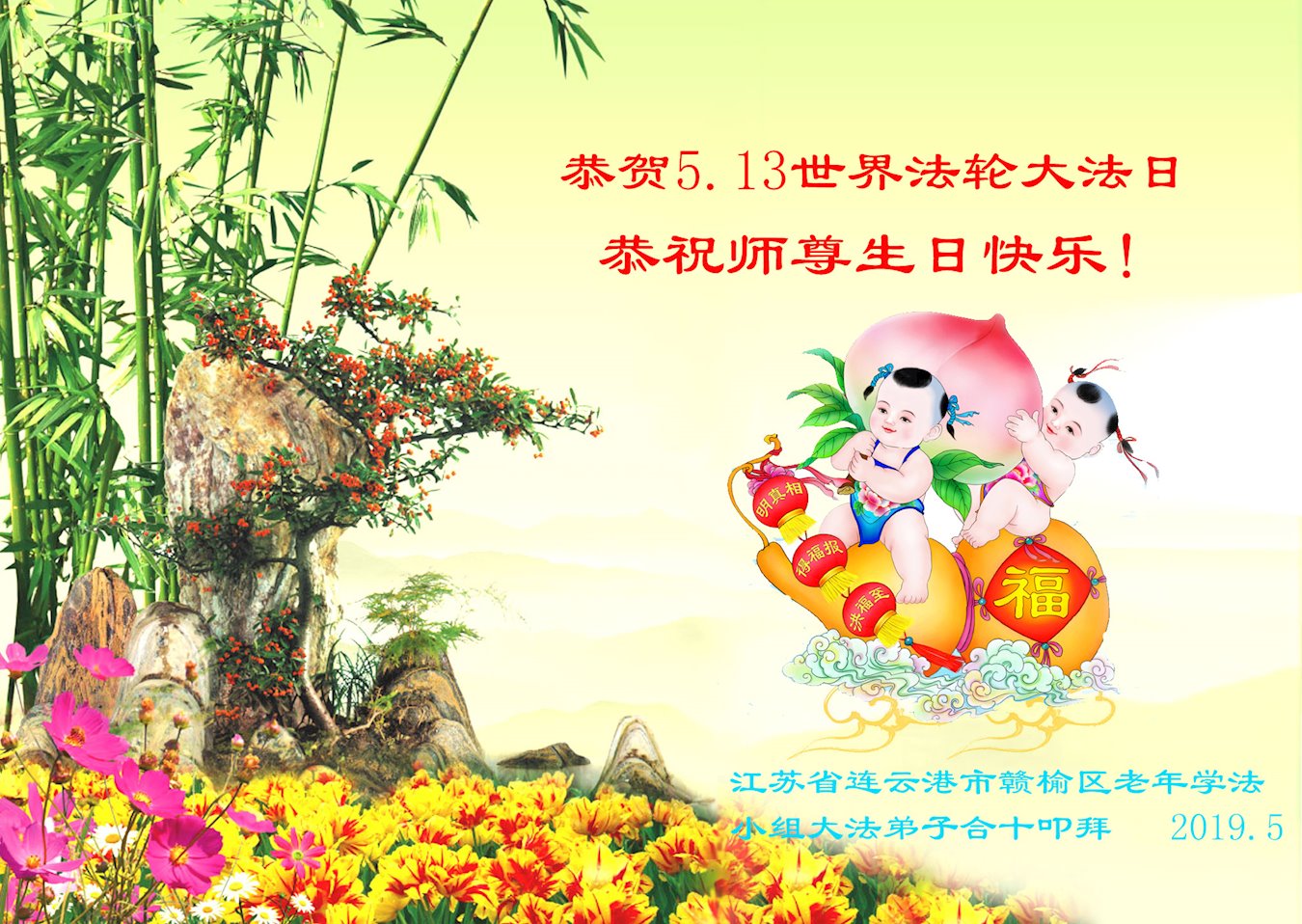 恭贺5.13世界法轮大法日 恭祝师尊生日快乐! 江苏省连云港市赣榆区老年学法小组大法弟子合十叩拜 江苏母女大法弟子恭祝师尊生日快乐!