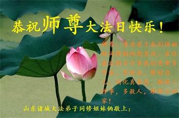 山东省潍坊市诸城市大法弟子同修姐妹俩恭祝师尊世界法轮大法日快乐!
