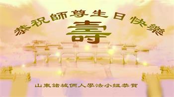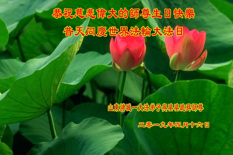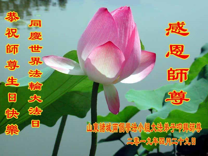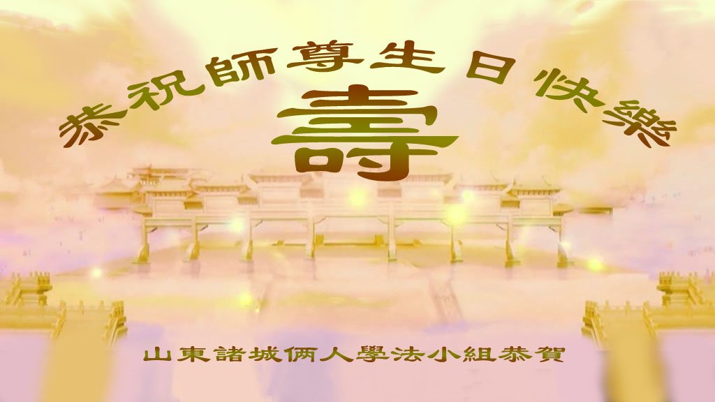 恭祝慈悲伟大的师尊生日快乐!庆祝世界法轮大法日! 弟子谨遵师尊的教诲,做好三件事,多学法,修好自己。一思一念要归正,用法衡量一切,紧跟师尊正法進程,圆满随师还! 山东潍坊诸城一学法小组大法弟子恭祝慈悲伟大的师尊生日快乐!洪穹同庆法轮大法日!