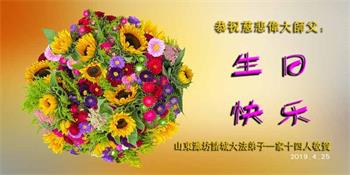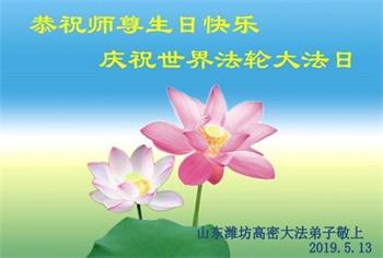 【明慧网二零一九年五月八日】 山东潍坊高密大法弟子恭祝师尊生日快乐!
