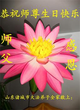 山东省潍坊市诸城市一大法弟子恭祝师尊生日快乐!暨庆祝世界法轮大法日!