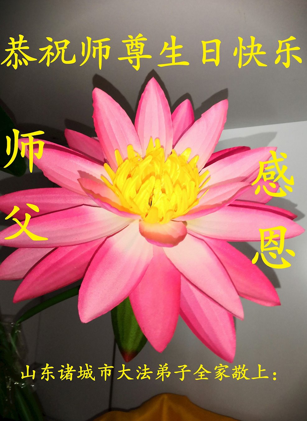 山东省潍坊市诸城市大法弟子全家恭祝慈悲伟大的师父生日快乐!