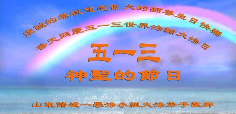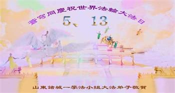 山东潍坊诸城一学法小组大法弟子恭祝慈悲伟大的师尊生日快乐!普天同庆世界法轮大法日!