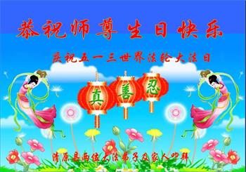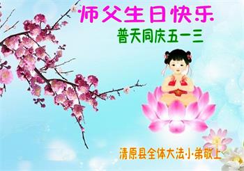 祝师尊生日快乐!弟子紧跟师尊正法進程,加倍努力,完成自己的神圣使命,跟师尊回家。最后祝愿师尊正法圆满成功! 辽宁大法弟子一学法小组敬献 辽宁抚顺大法弟子庆祝世界法轮大法日!
