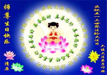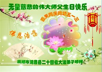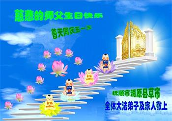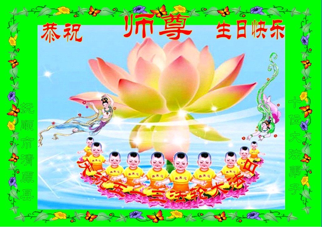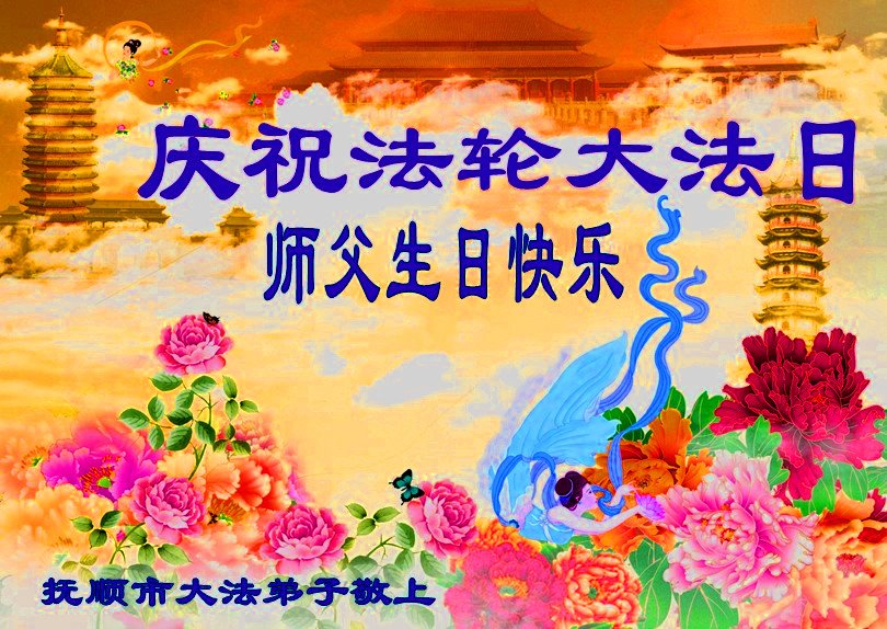 普天同庆世界法轮大法日! 辽宁省抚顺市大法弟子敬上 辽宁省抚顺市大法弟子恭祝师尊生日快乐!